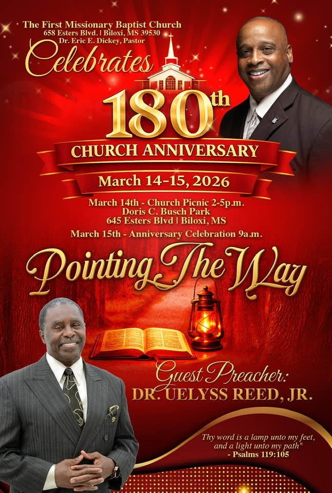 For those who are not familiar with the Church’s history…in 1846, the first Colored Baptist Church was born. This was a giant step forward for the Christians of Biloxi. The first records that were written were destroyed in fire. The Church history could not be destroyed because it is wrapped up in the word of God and preserved in the hearts of pioneers whose souls were set on fire when they heard their fore-fathers tell the story of Christ, mingled with the beautiful beginnings of laborers of this spiritual institution.